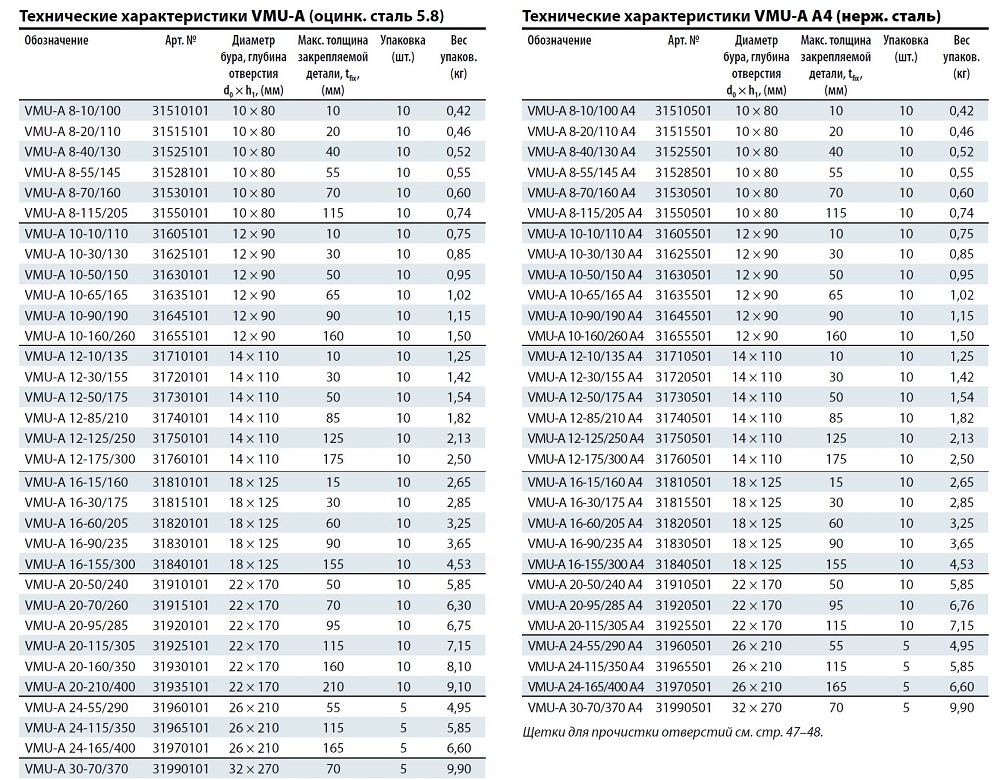 Шпилька резьбовая MKT VMU-A 20-115/305, нержавеющая сталь A4 31925501 | ||||||||||